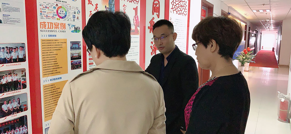 滄州師范學(xué)院商學(xué)院院長(zhǎng)張鳳燕女士、廣告學(xué)專(zhuān)業(yè)教授王麗芳女士和學(xué)生代表一行對(duì)滄州智博信息技術(shù)有限公司的辦公環(huán)境、日常工作、公司榮譽(yù)、團(tuán)隊(duì)建設(shè)、企業(yè)文化等進(jìn)行了實(shí)地參觀(guān),整潔的辦公環(huán)境、堅(jiān)實(shí)的技術(shù)實(shí)力、年輕朝氣的團(tuán)隊(duì)成員、創(chuàng)新進(jìn)取的企業(yè)精神給她們留下了深刻印象。